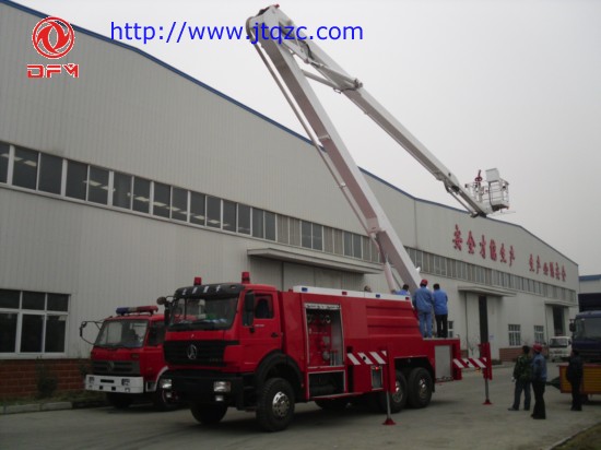 豪濼26米舉高噴射消防車是采用重汽原裝二類消防車專用底盤ZZ1257N4647C基礎(chǔ)之上加舉高機(jī)構(gòu)、液壓旋轉(zhuǎn)機(jī)構(gòu)、消防炮、消防泵及罐體、器材箱等改裝而成,配有中低壓消防泵,具有向高層建筑噴水滅火和高層供水,是專職消防隊(duì)、石油化工必備的消防車輛。